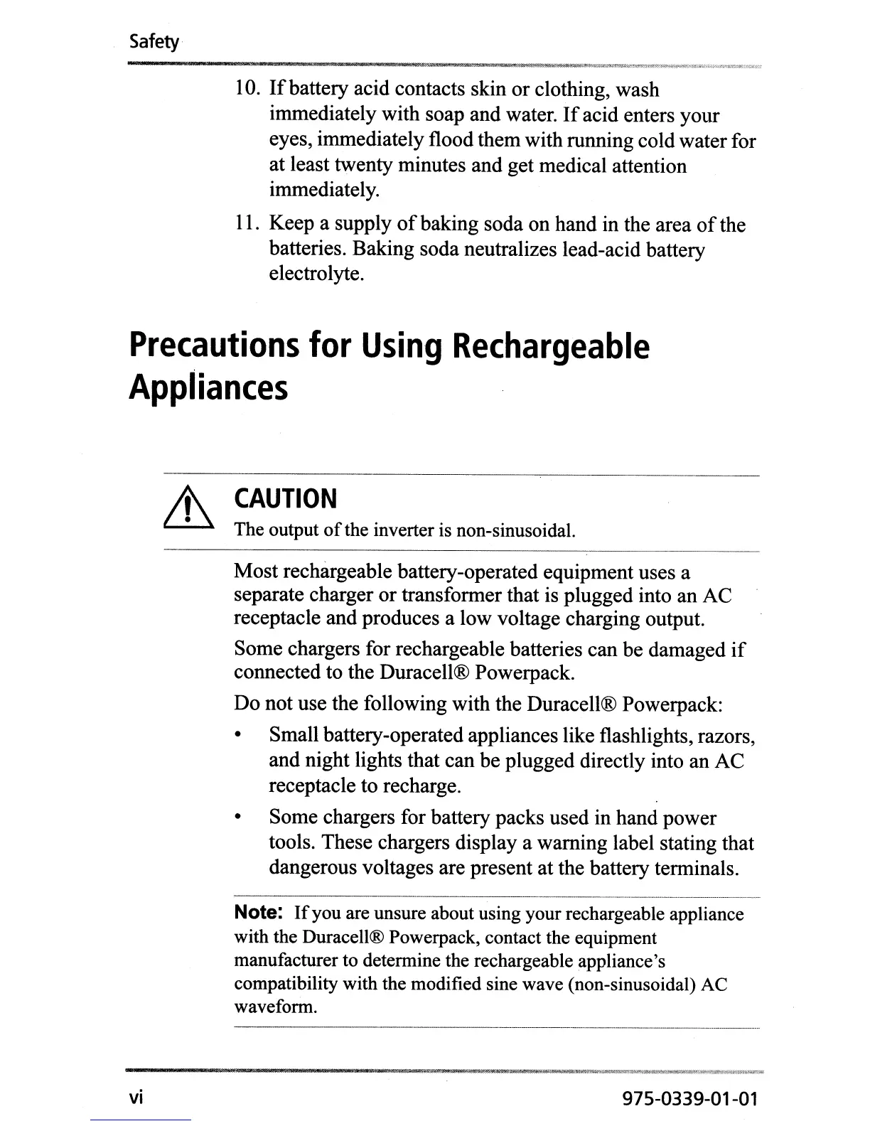 Do not use the following with the Duracell® Powerpack: