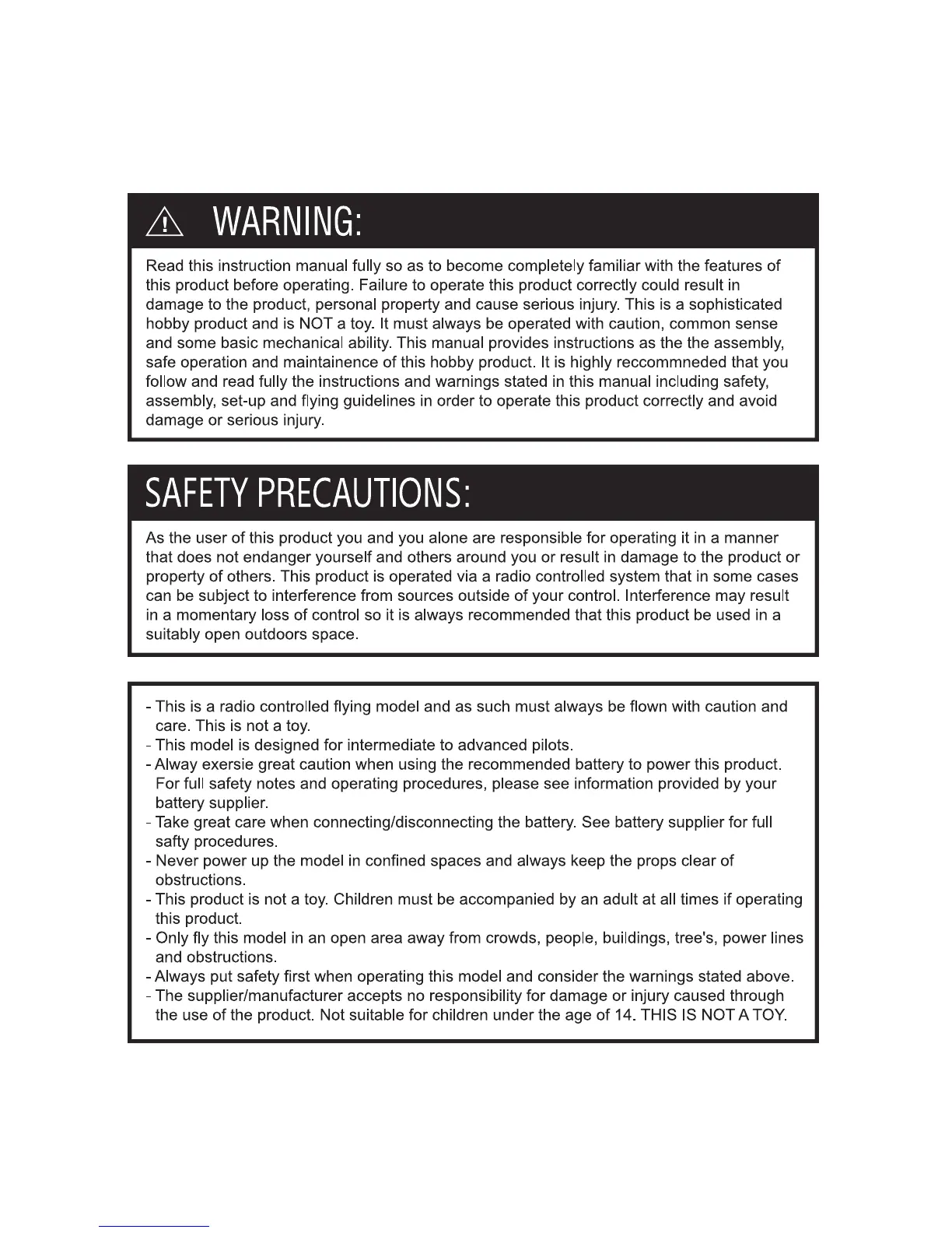 Durafly EFXTRA - EFXTRA Safety and Precautions; Critical EFXTRA Warning; EFXTRA Operational Safety
