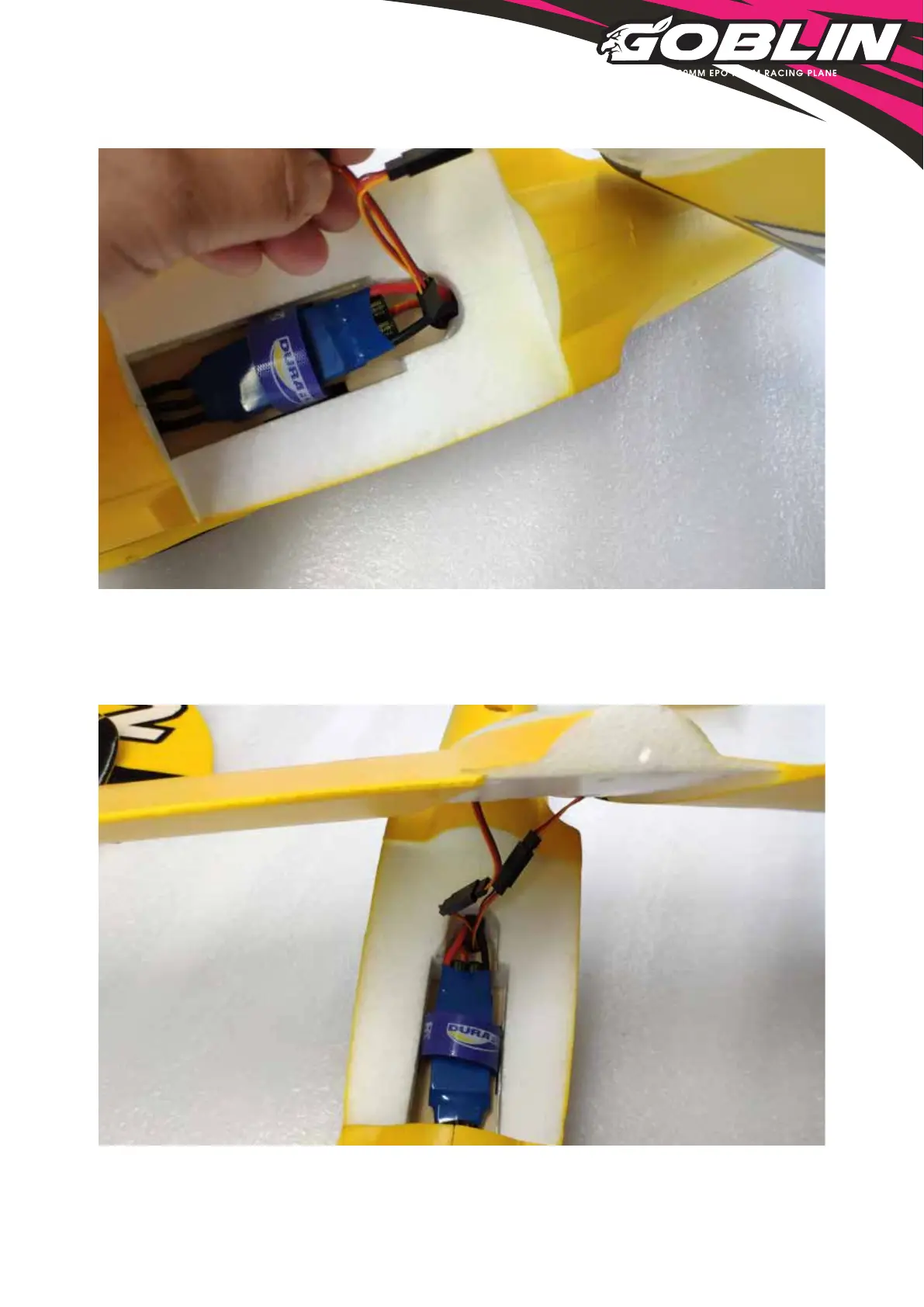 Feed the aileron Y lead connector through the opening behind the ESC.