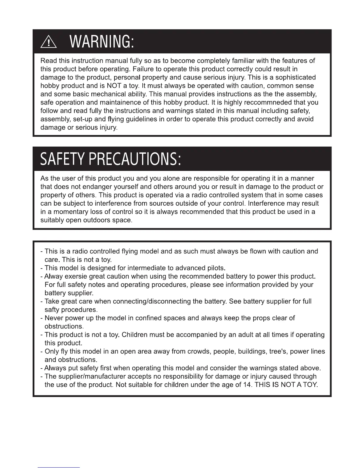 Durafly Spitfire Mk1a - Safety Precautions; General Safety Guidelines