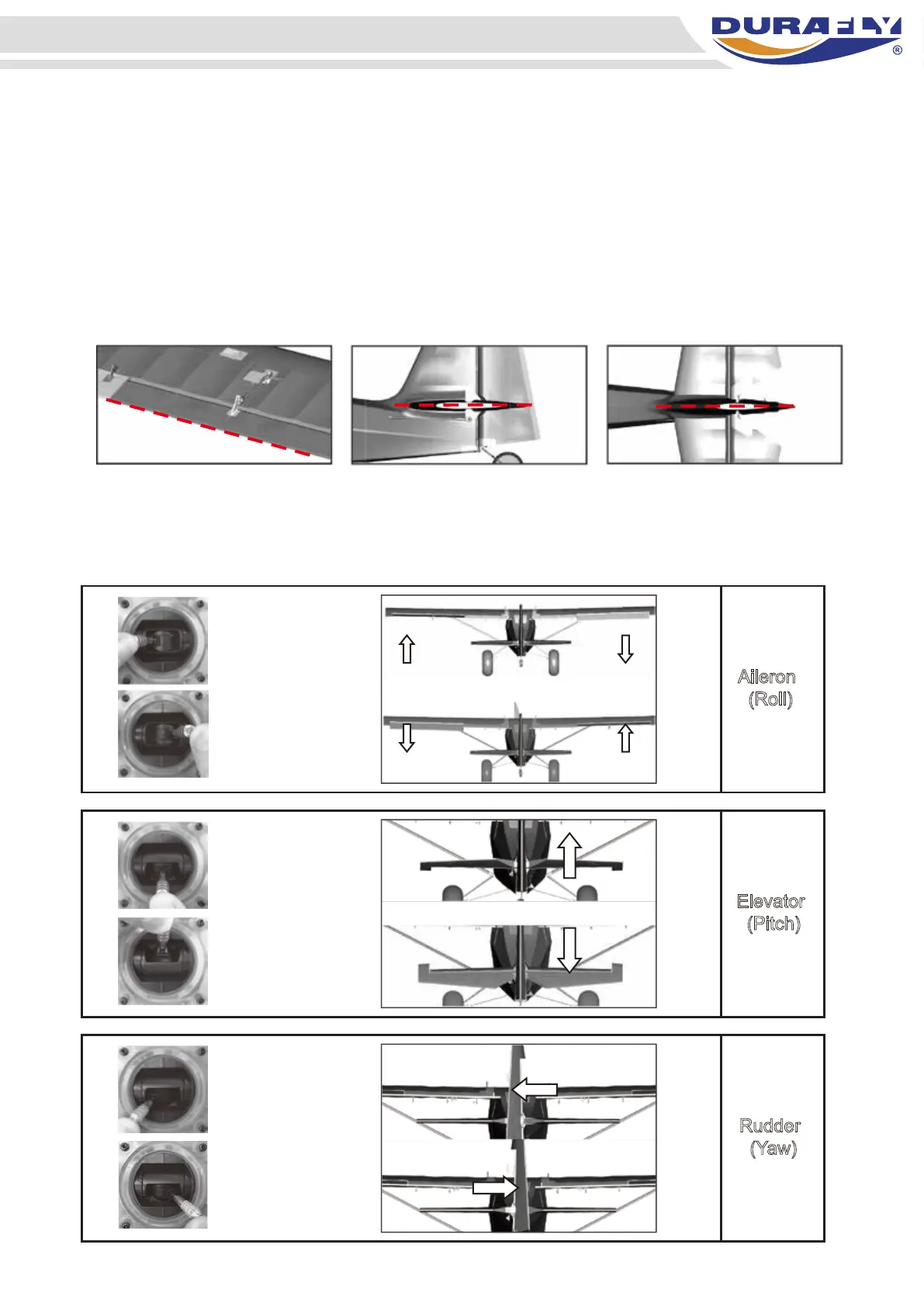 by hand accordingly until the control surfaces are level as shown.
