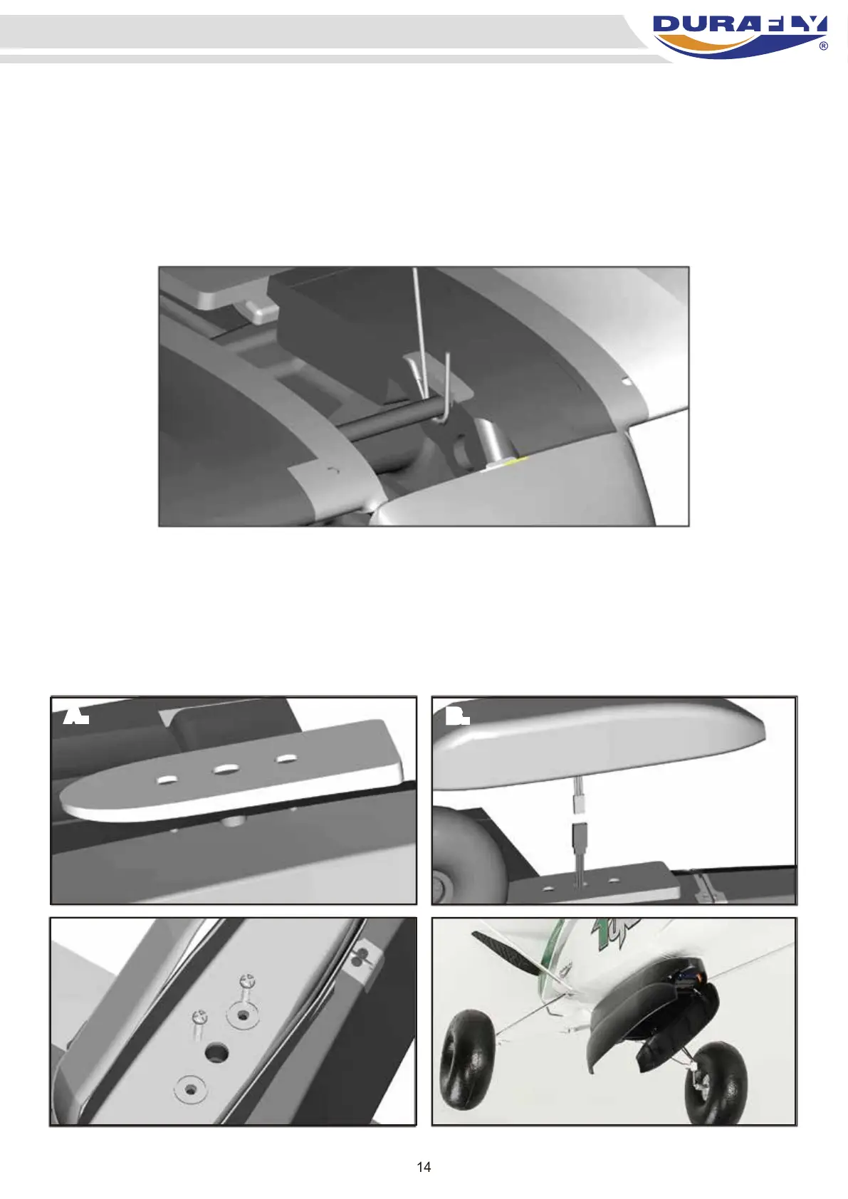 holes on the underside of the fuselage (A). Feed the Y-lead supplied with the dropper through the