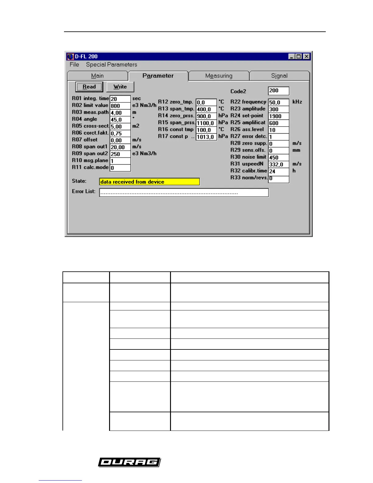 Parameter name Meaning