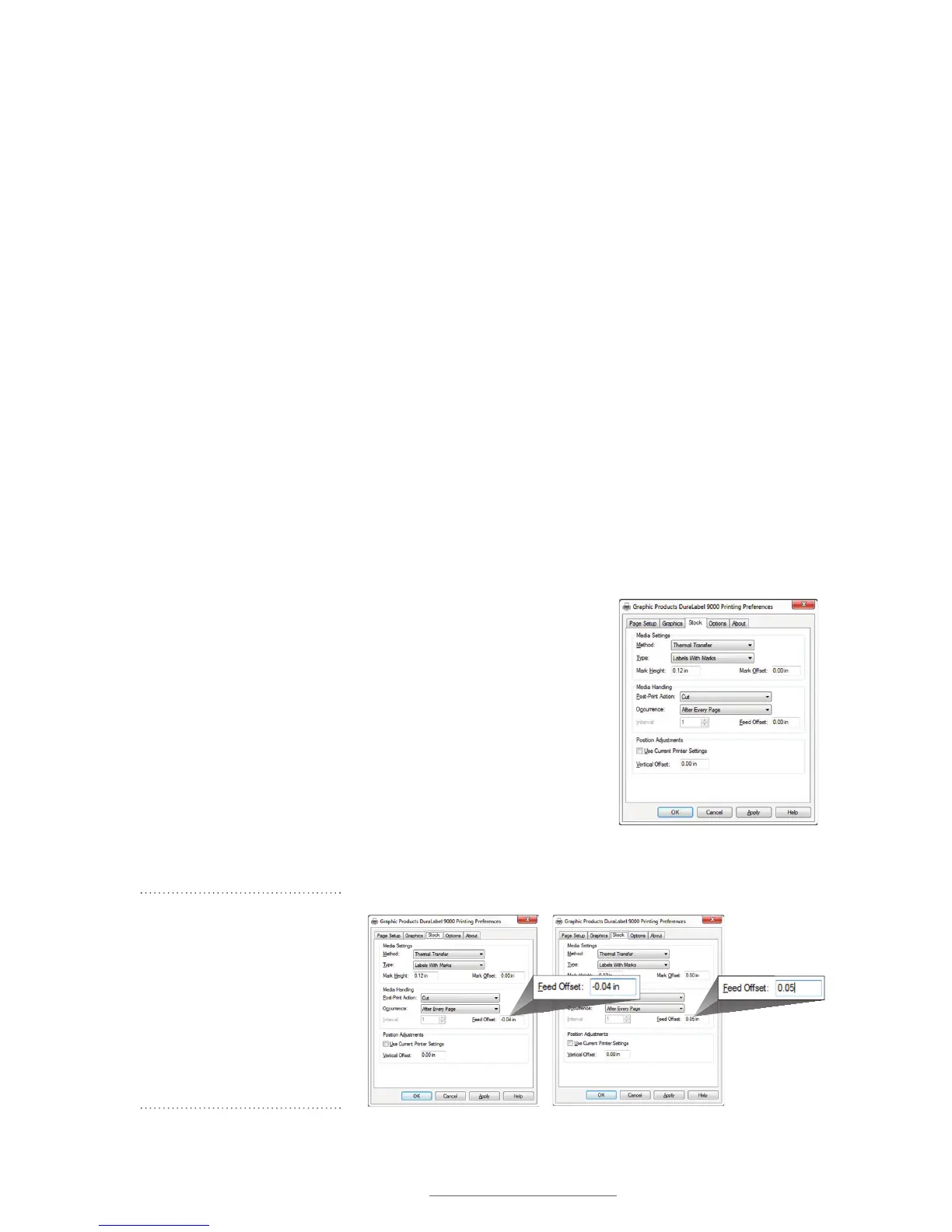 If the printer does not cut a B Mark label accurately, adjust Feed Offset up or