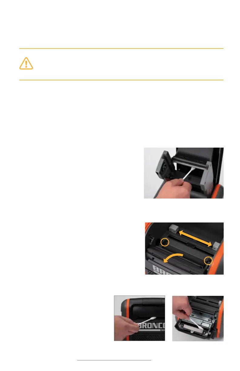 6. Run the swab or cloth between and around the gray adjustable label guides in the