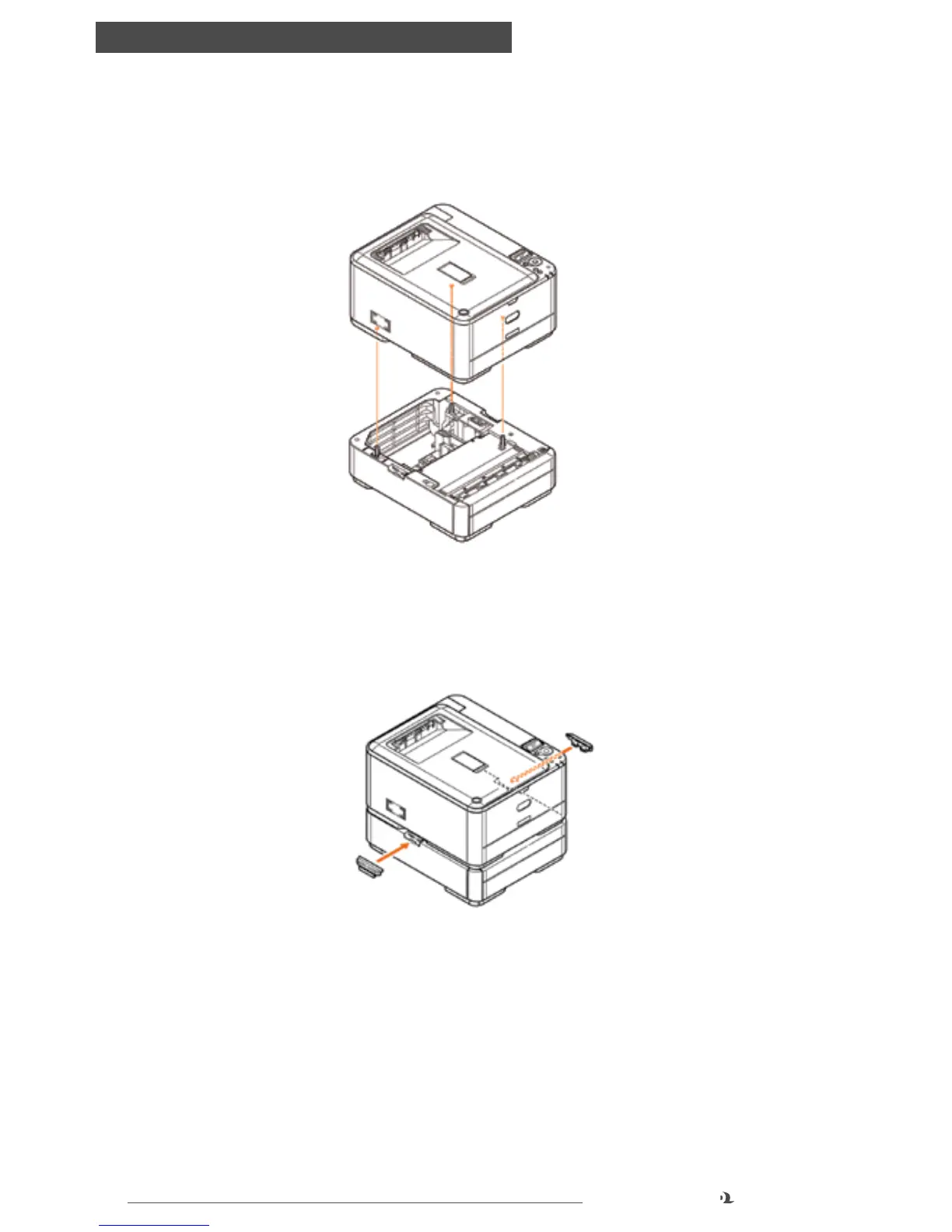 3. Observing safety rules for lifting and, using locating guides, place printer on top
