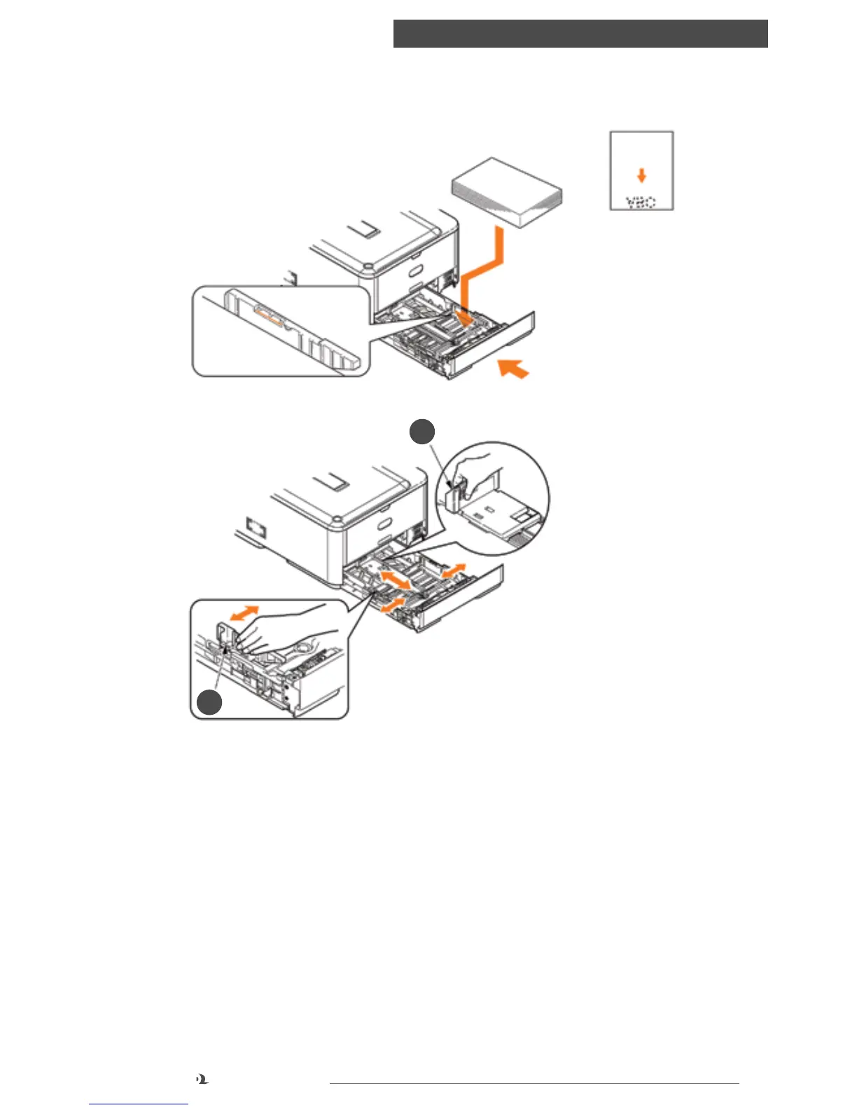 3. Load paper (letterhead face down and top edge towards the front of the printer),