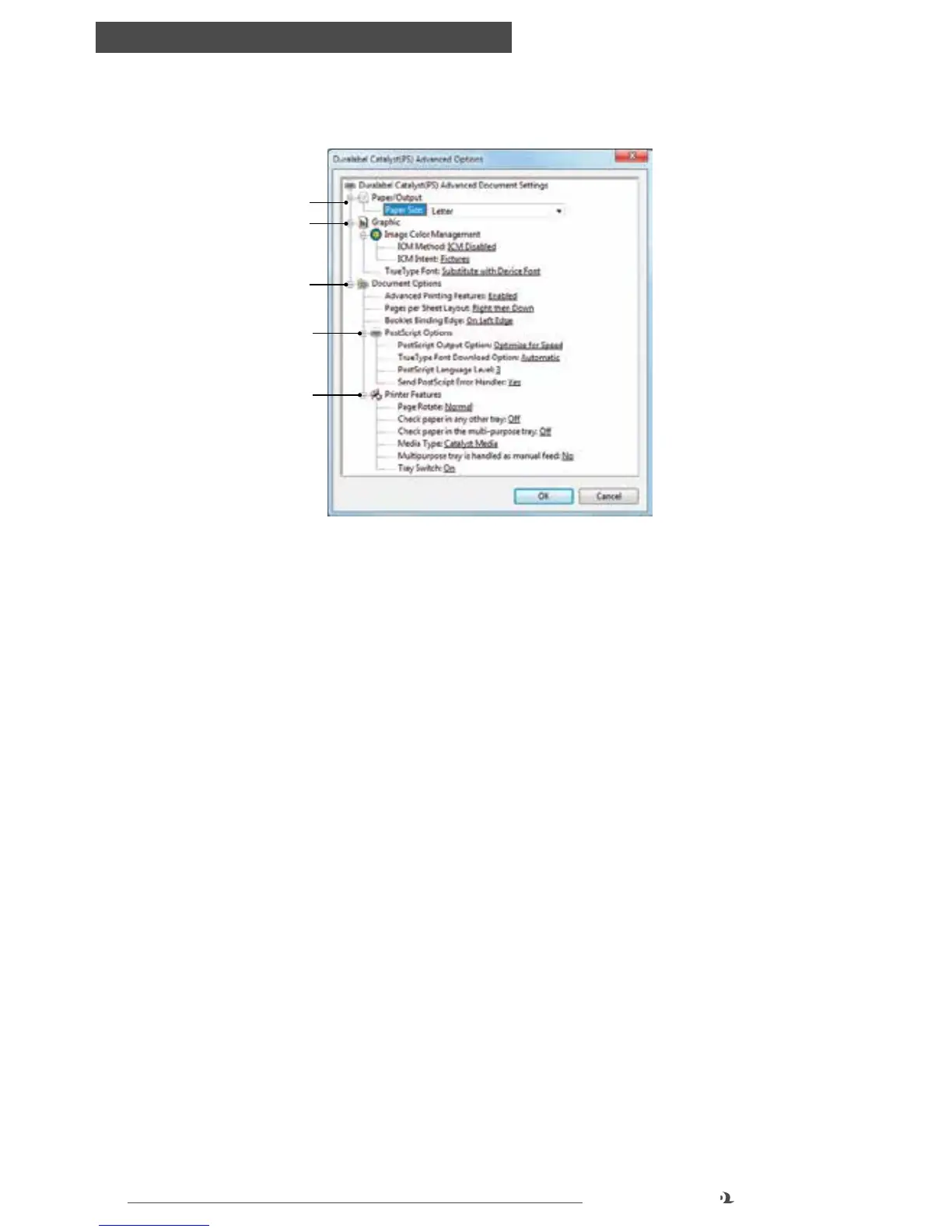 5. Printer Features: These settings affect which trays Catalyst will pull media