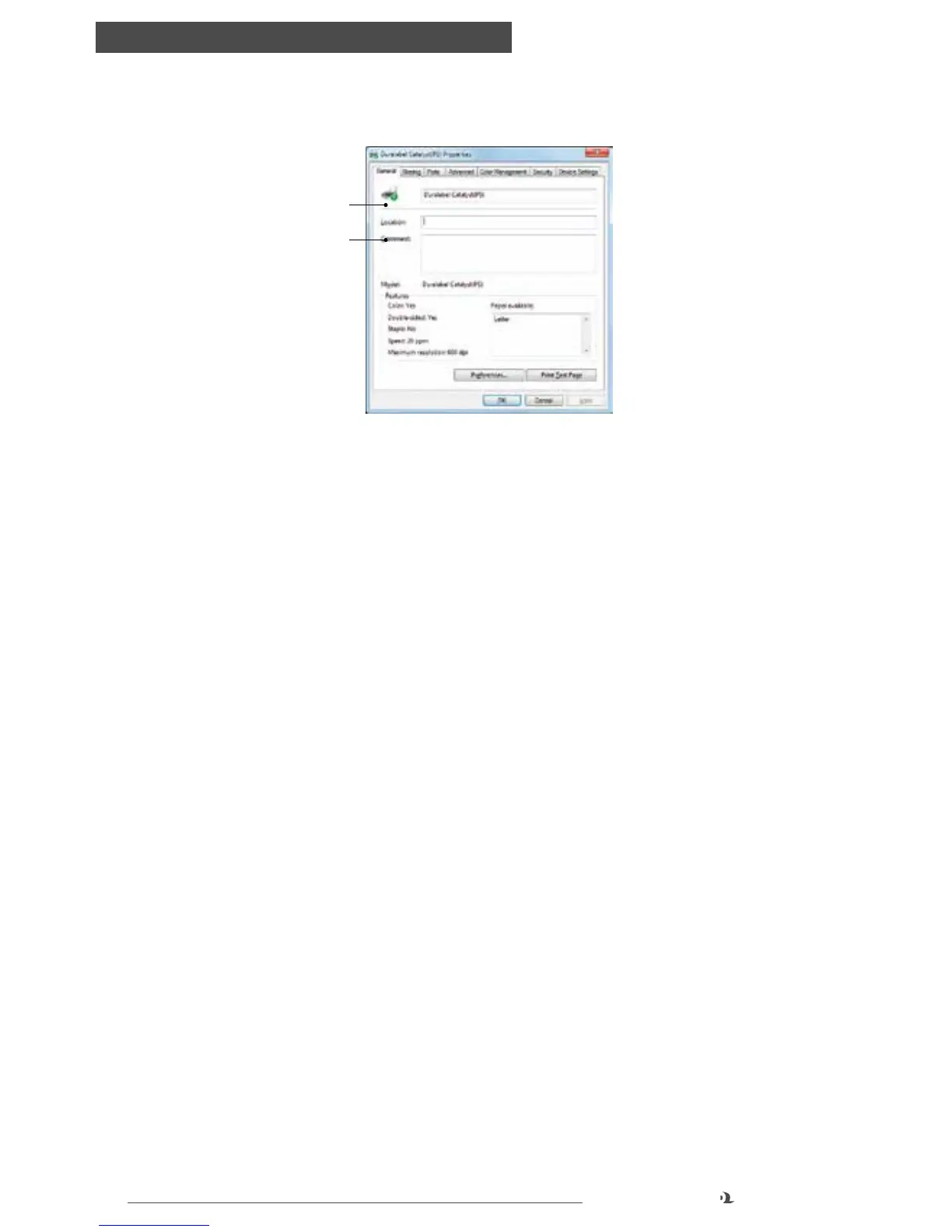 Printer settings in windows