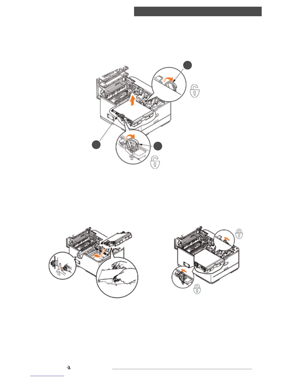 4. Pull the locking levers at each side of the transfer belt up and towards the front