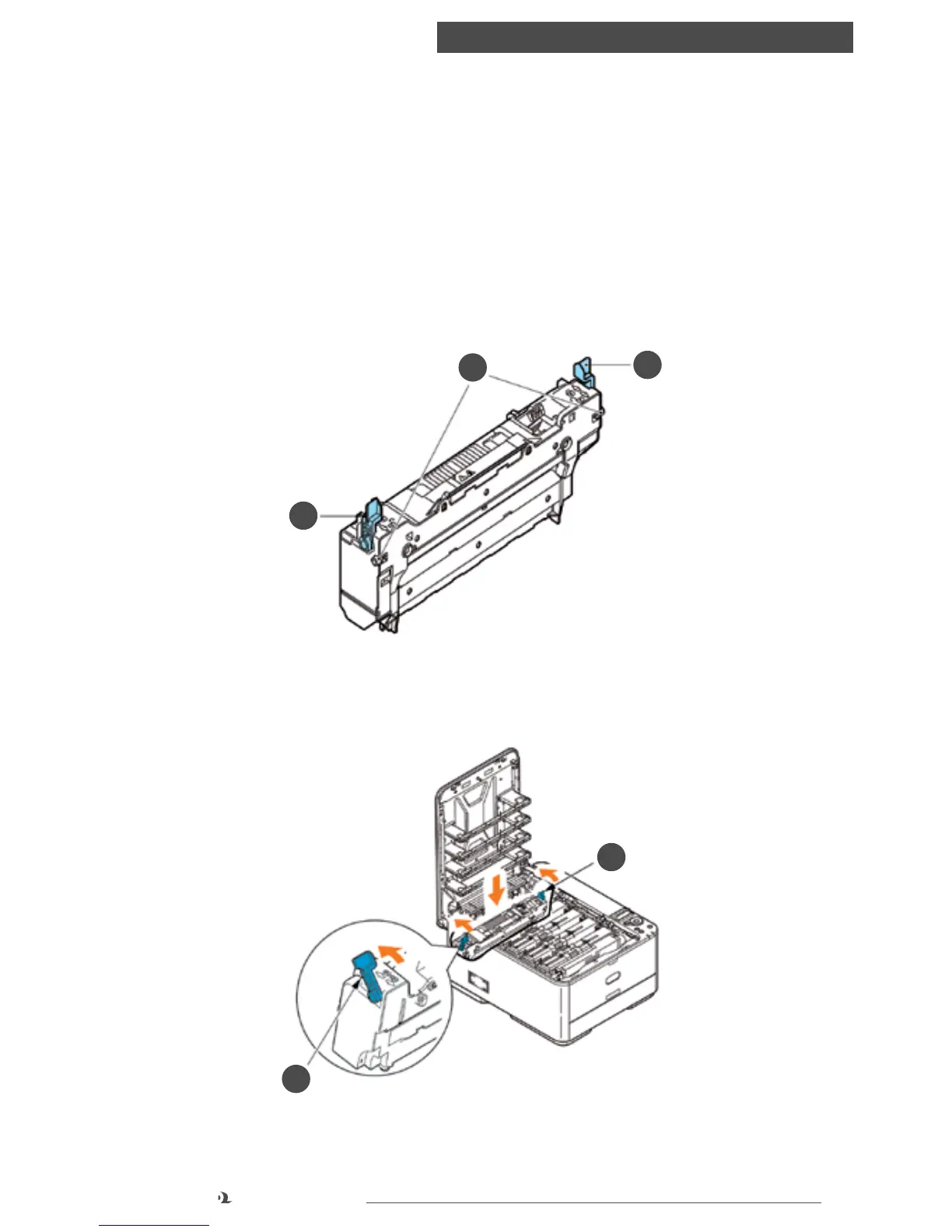 8. Push the two retaining levers (b) towards the rear of the printer to lock the fuser