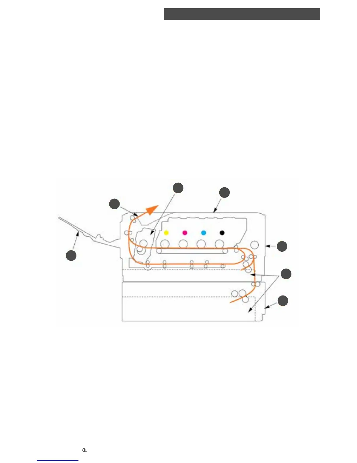 paper path through the printer. When a jam occurs, the printer immediately stops,
