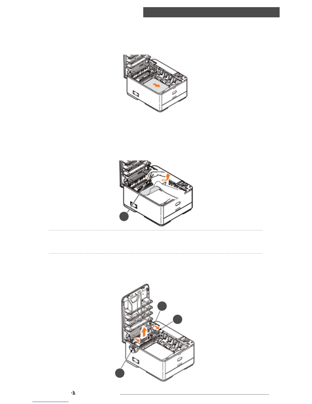 c. To remove a sheet just entering the fuser (c), separate the trailing edge of