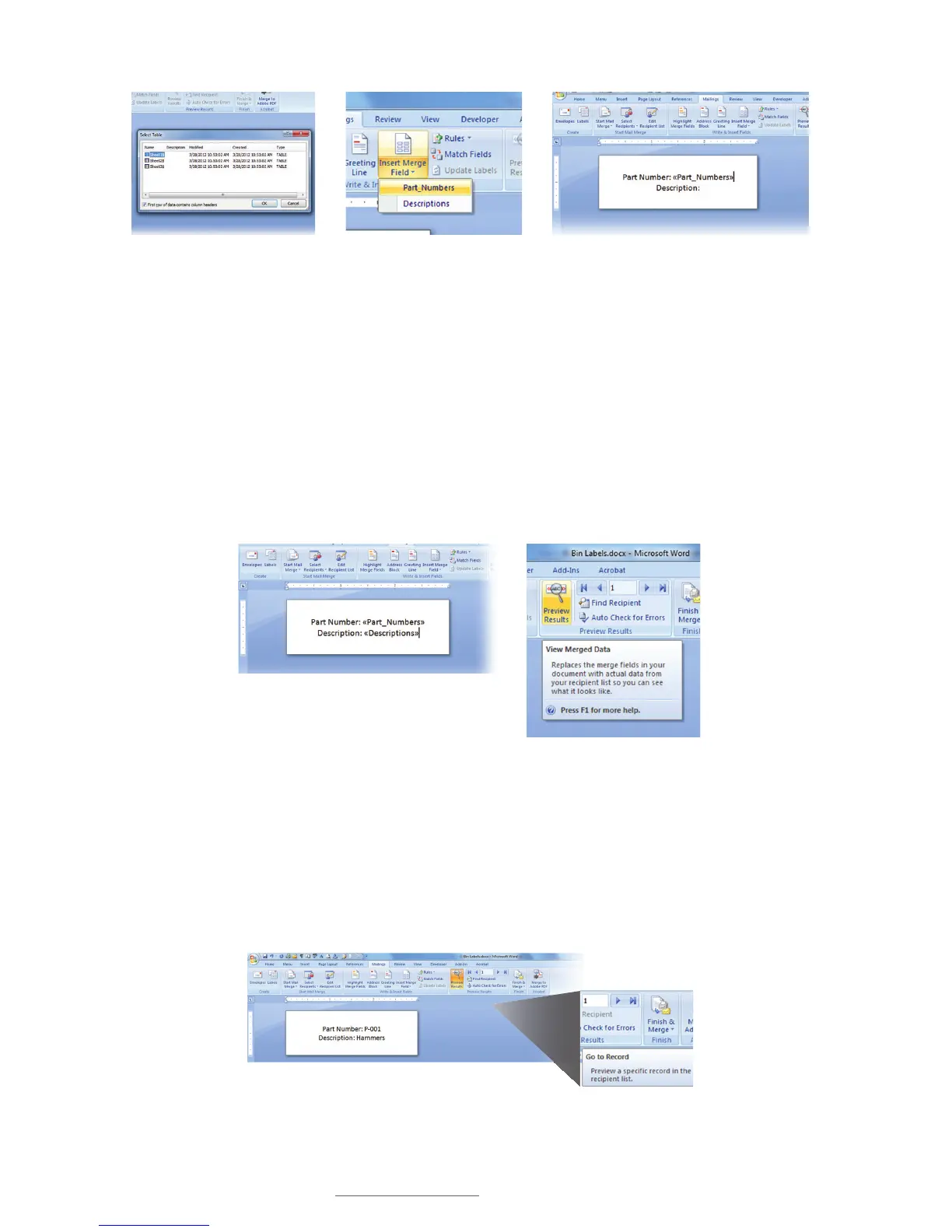 L. Select Preview Results from the Word toolbar. A View Merged Data window should