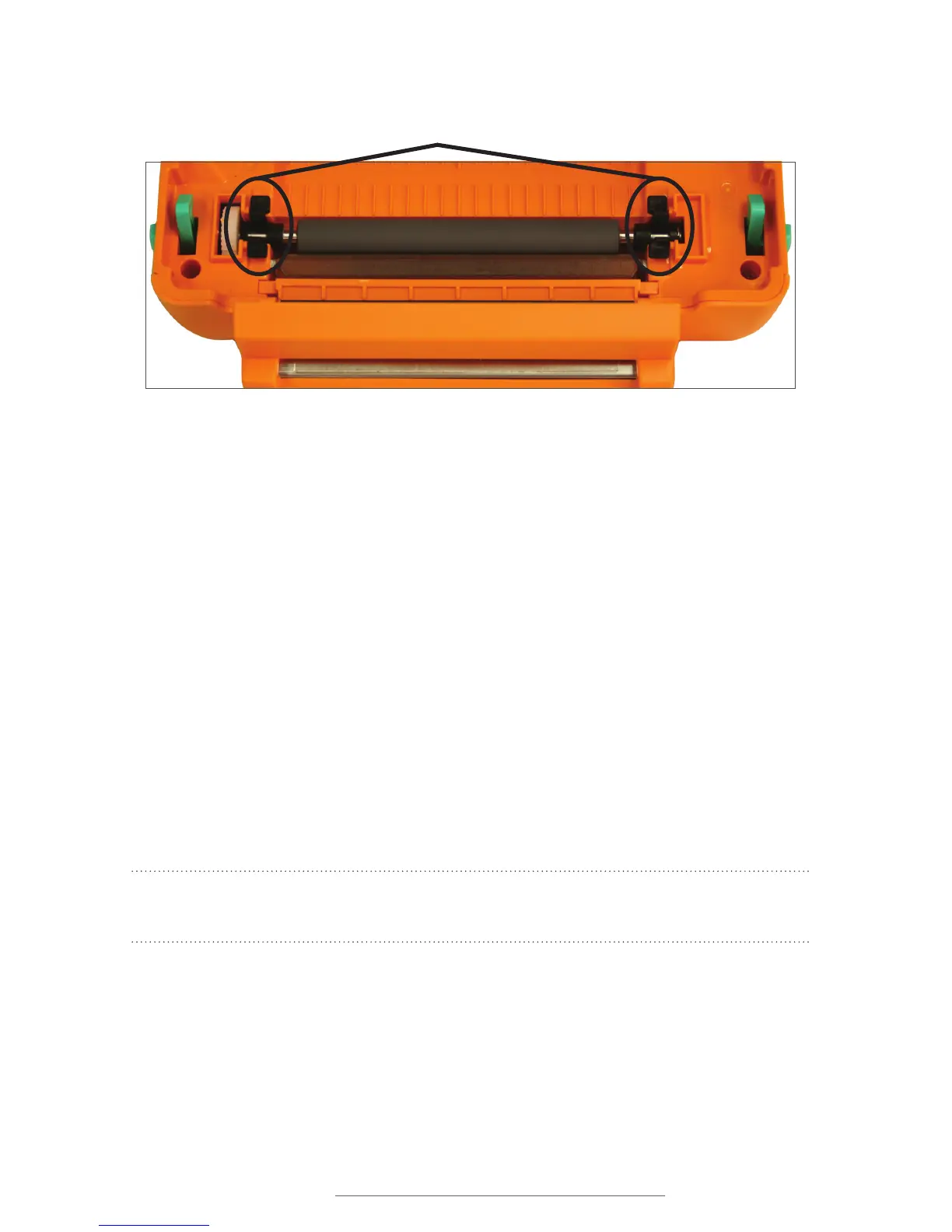 A. Remove the platen roller by squeezing the black tabs on either side and lifting up.