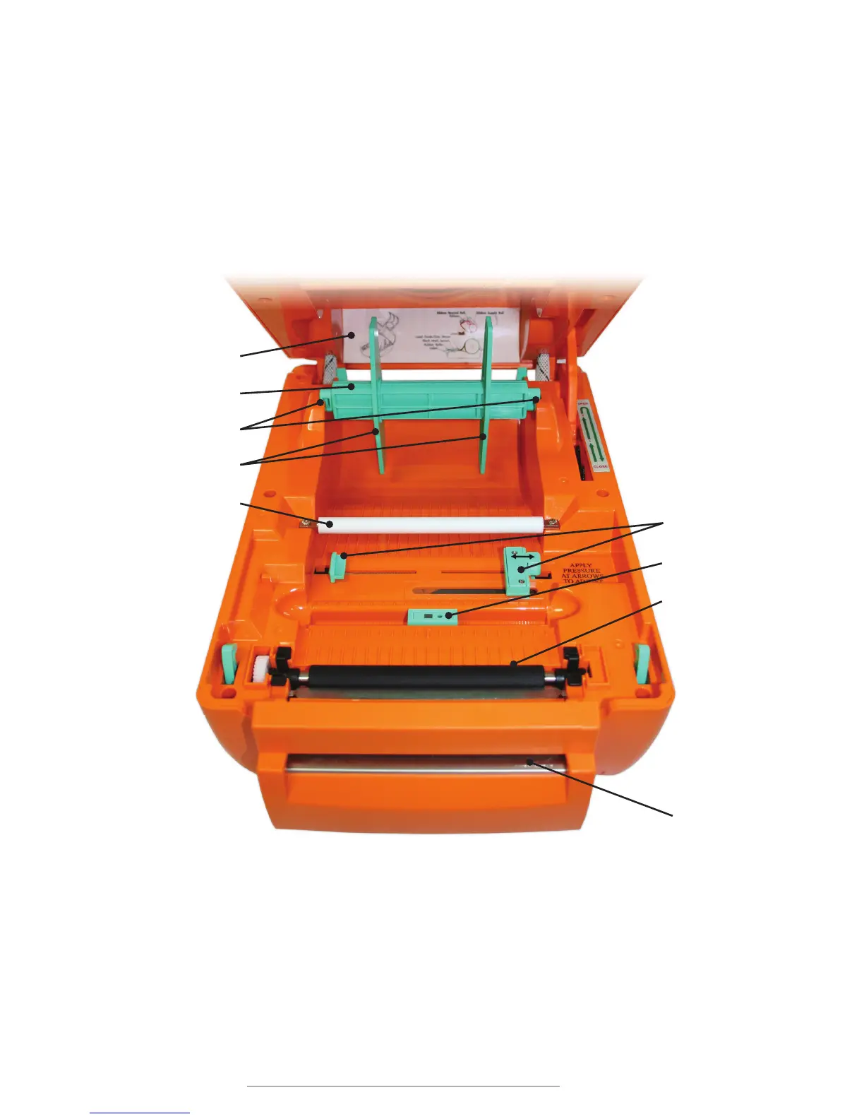 Figure 1 Inside of printer, with ribbon mechanism open in upright position