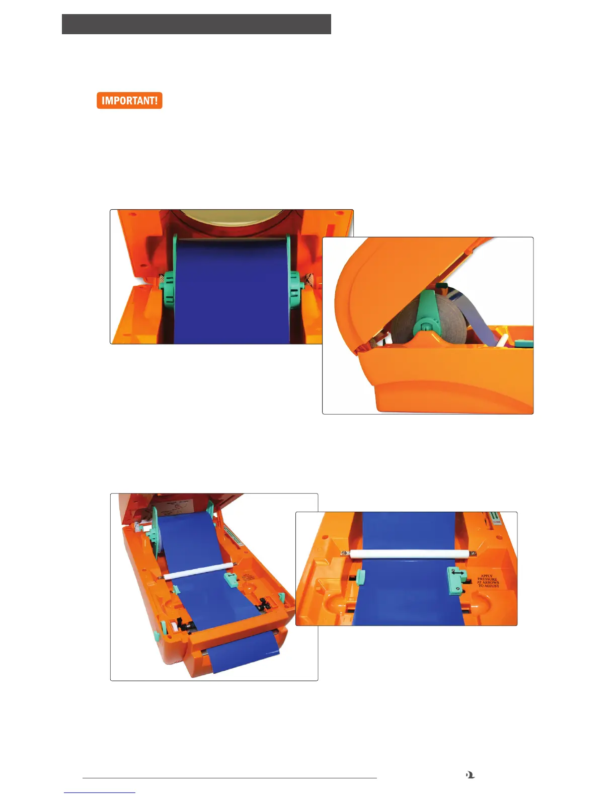 B. Place loaded label supply spindle into the label roll mount slots, with the label