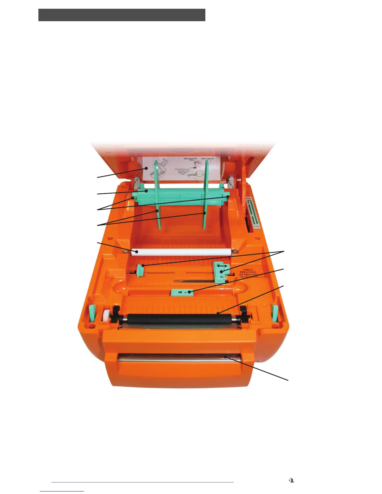 FIGURE 1 Inside of printer, with ribbon mechanism open in upright position