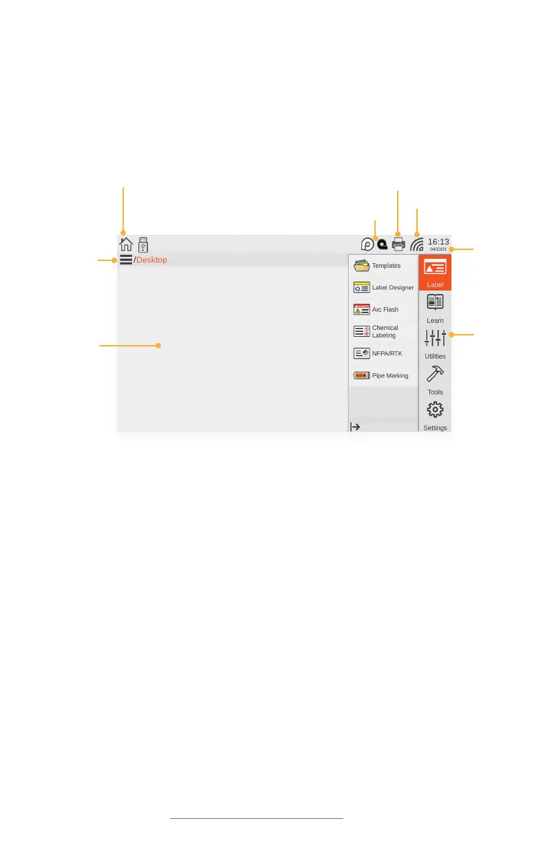general options that are available: Label, Learn, Utilities, Tools, and Settings.