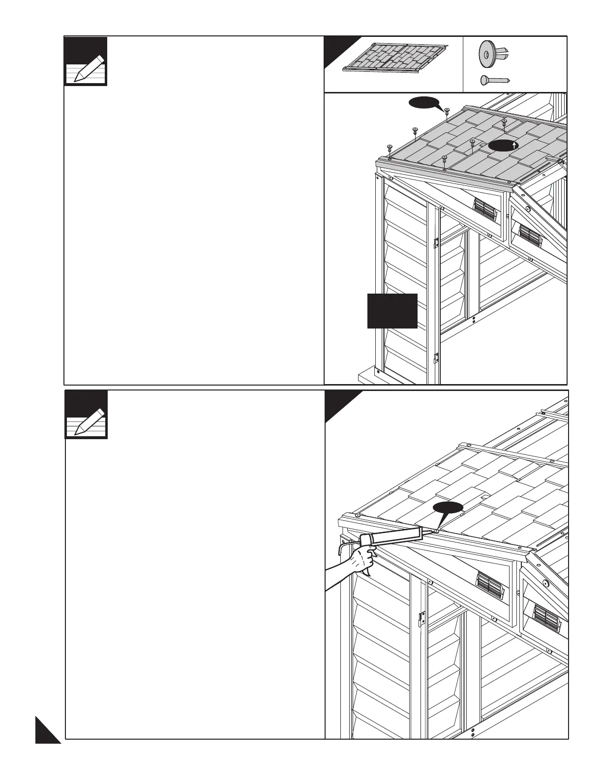 (FR) Note : Appliquer du silicone autour des chevilles de toit.