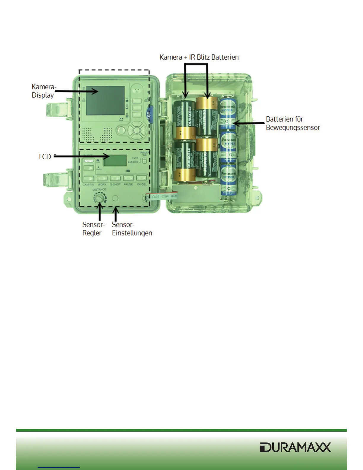 • Danach ist das Gerät bereit zur Einrichtung. Drücken Sie CAM-PW um die Kamera-Sektion