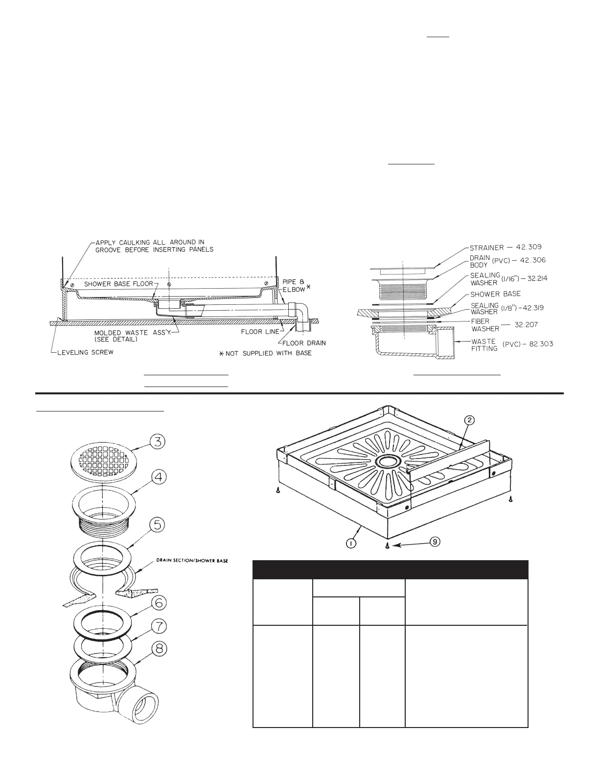 A. Check shower base carefully making sure it is not damaged. Refer to the “rough-in” drawing and