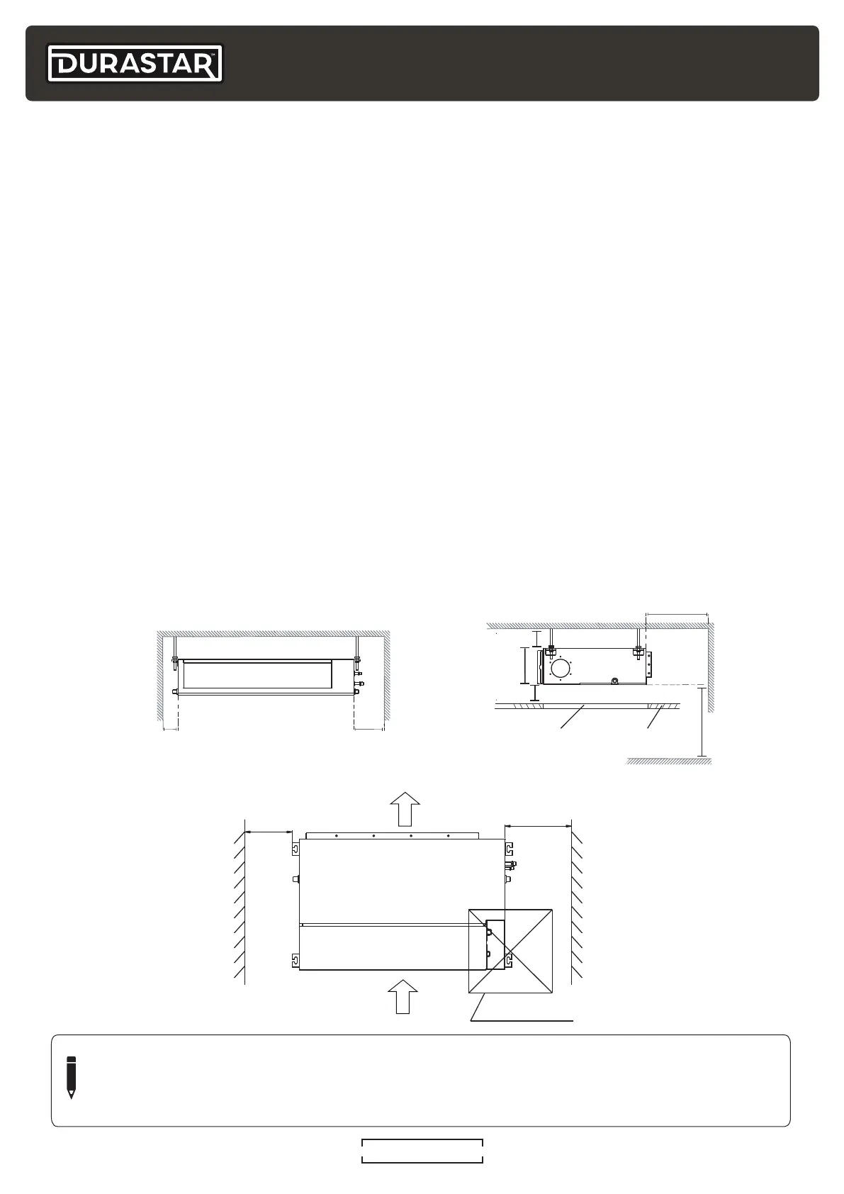 Refer to the following diagrams to ensure proper distance from walls and ceiling:
