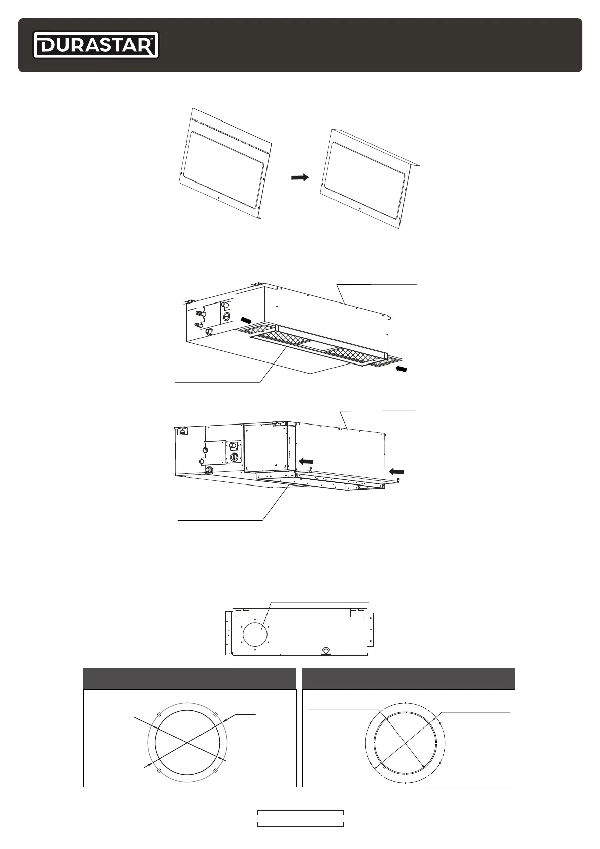 This unit allows for a fresh air duct to be installed. Duct location and dimensions are shown below.