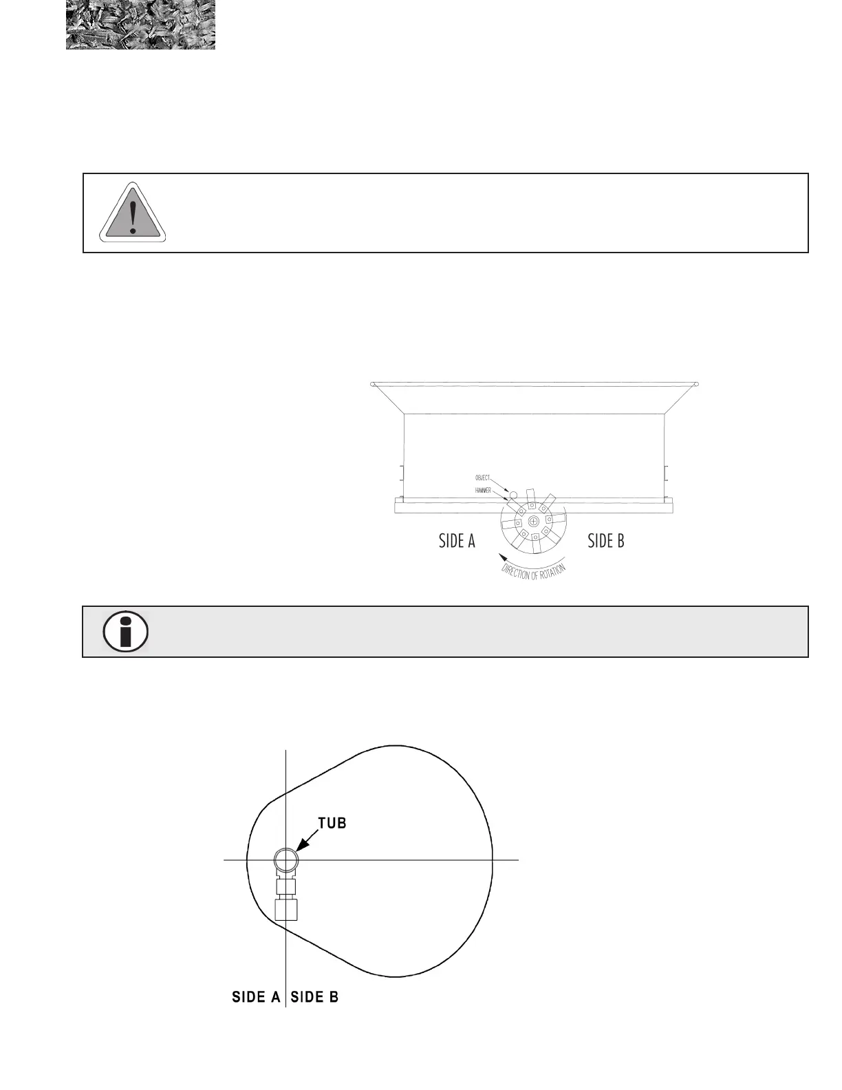• Never grab rope, cable, twine or similar material hanging out of tub while the tub grinder is