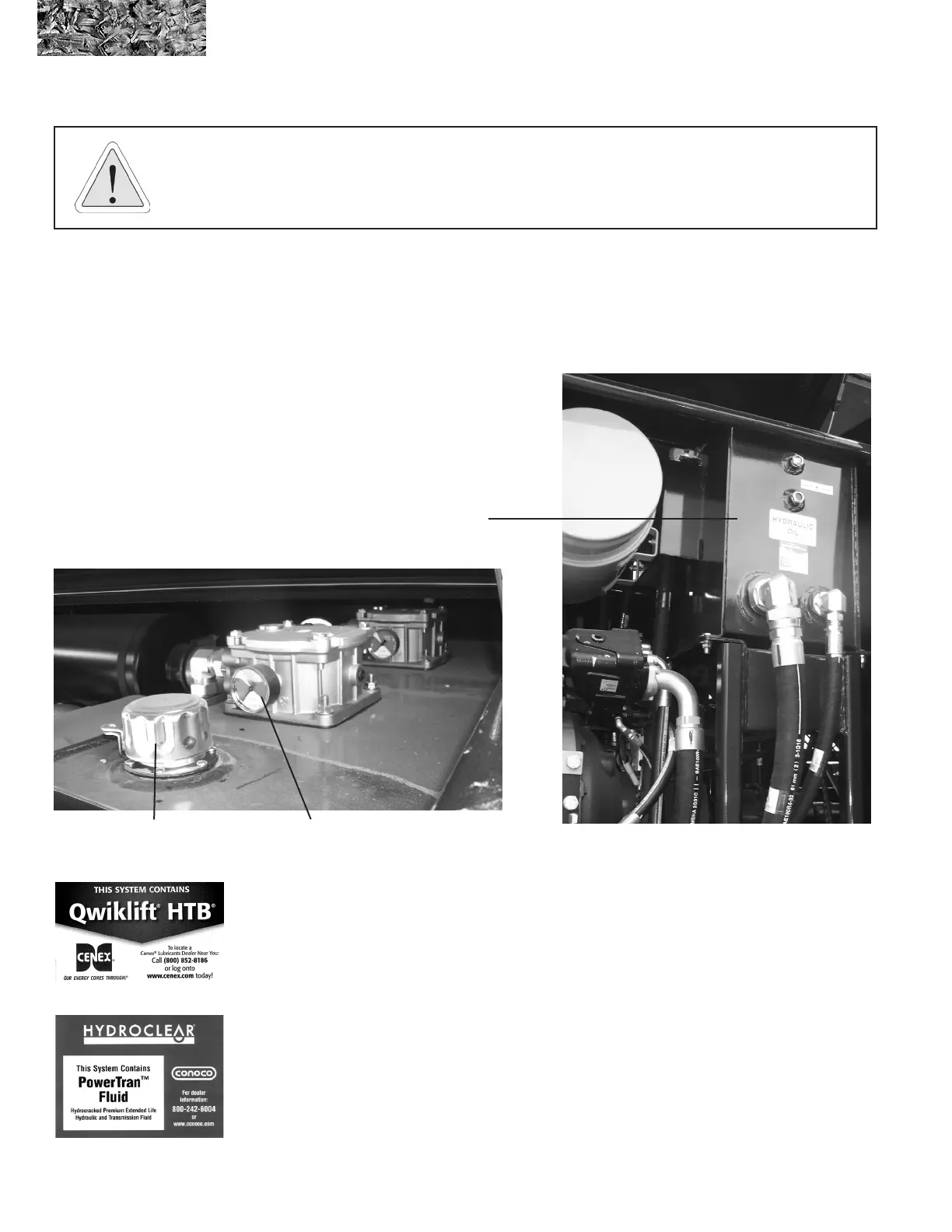 Qwiklift decal on the hydraulic tank. Other acceptable uids include Mobil 423, Farmland