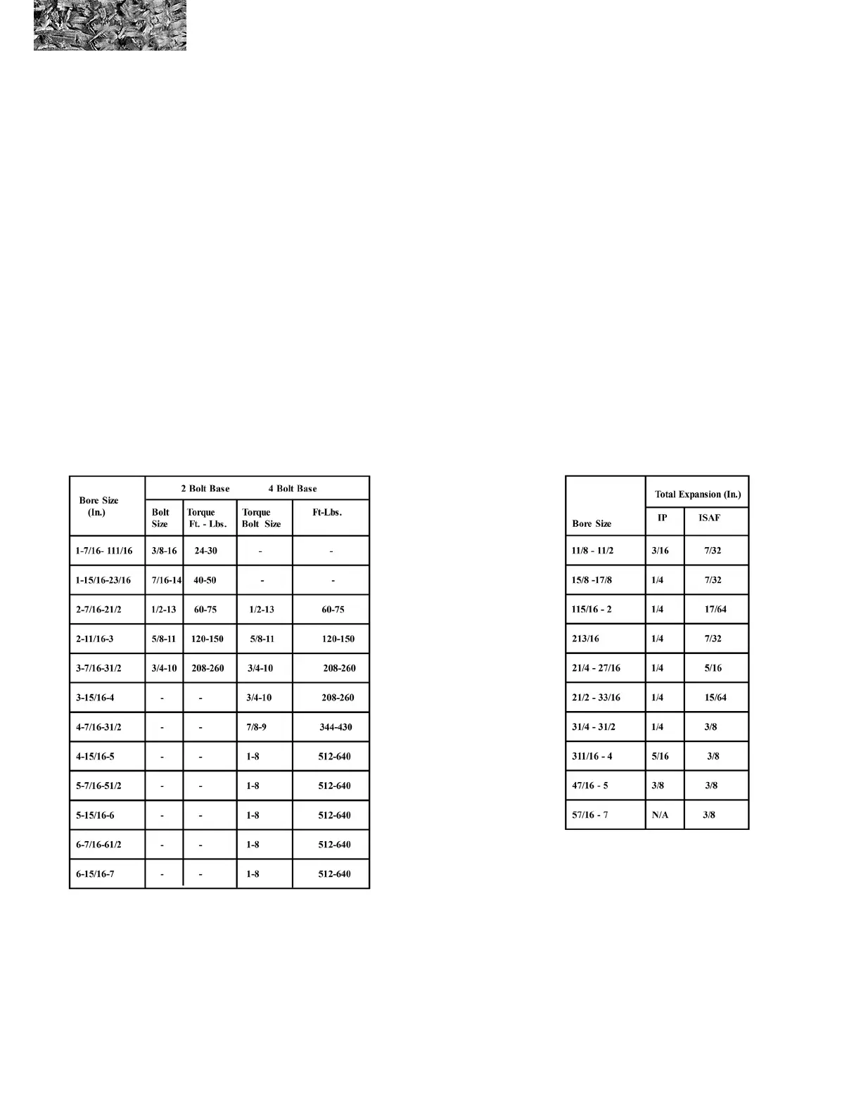 TABLE 2 - Cap Bolt Torque for ISAF Pillow Blocks
