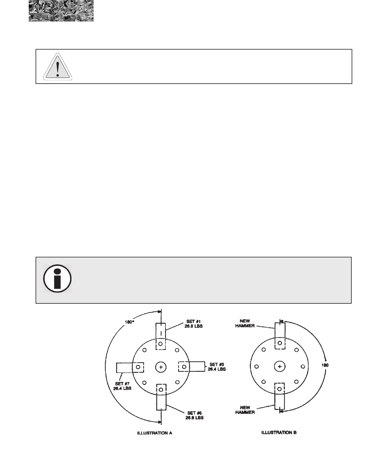 Illustration B). When starting the hammermill after installing a new set of hammers or turning corners, watch for