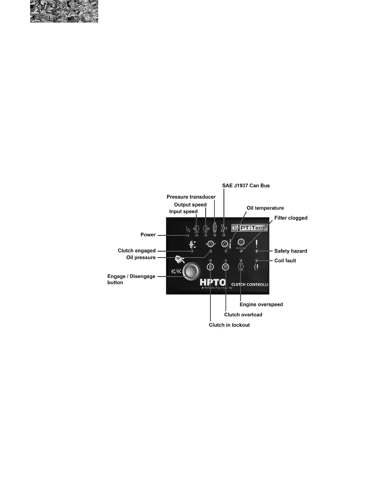 To disengage the clutch, set engine speed below 1200 rpm and push the “Engage/Disengage Button”. The clutch will