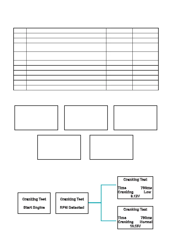 • Select CRANKING TEST: the tester then displays the following:
