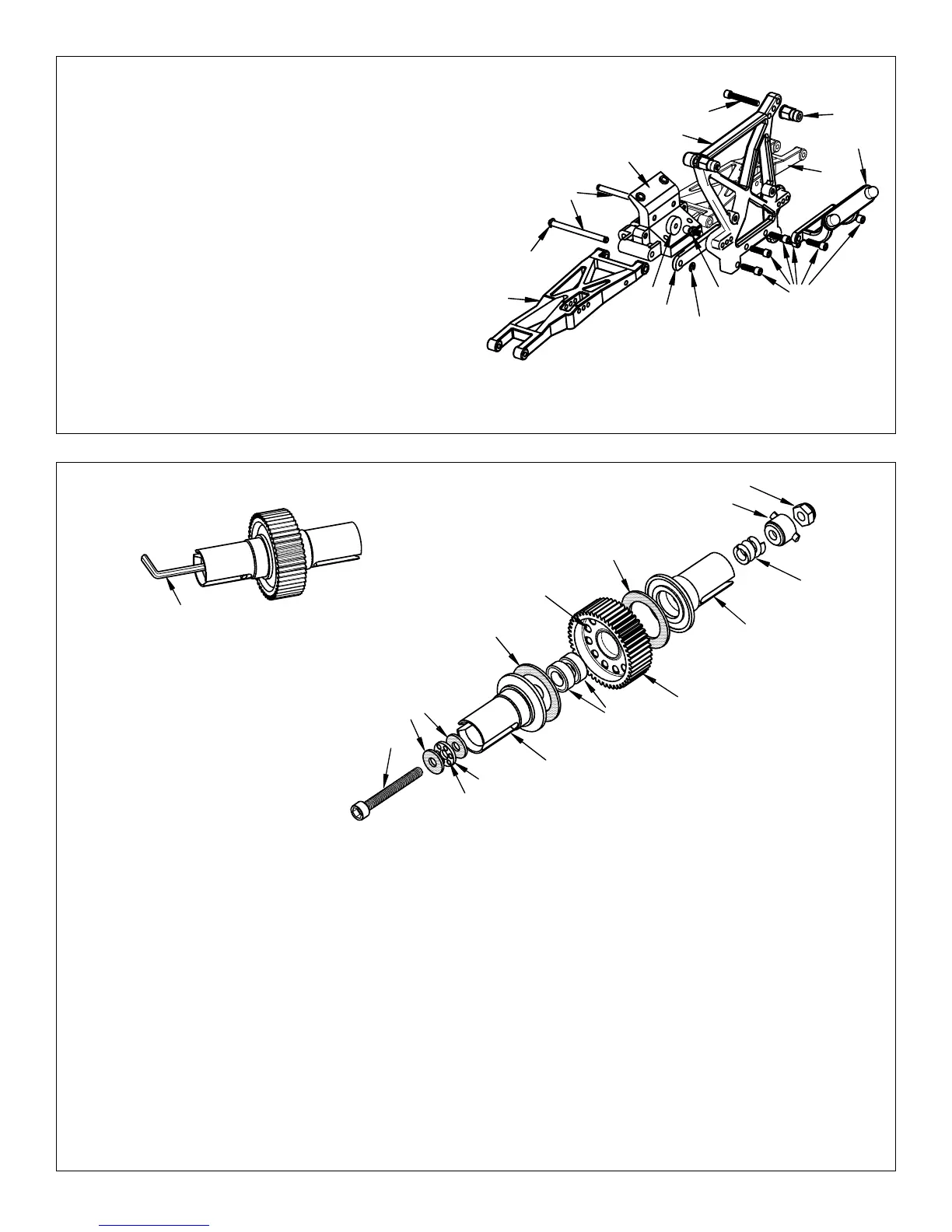 8. Install a 5x9mm bearing into the center of the differential gear and install the gear onto the left outdrive.