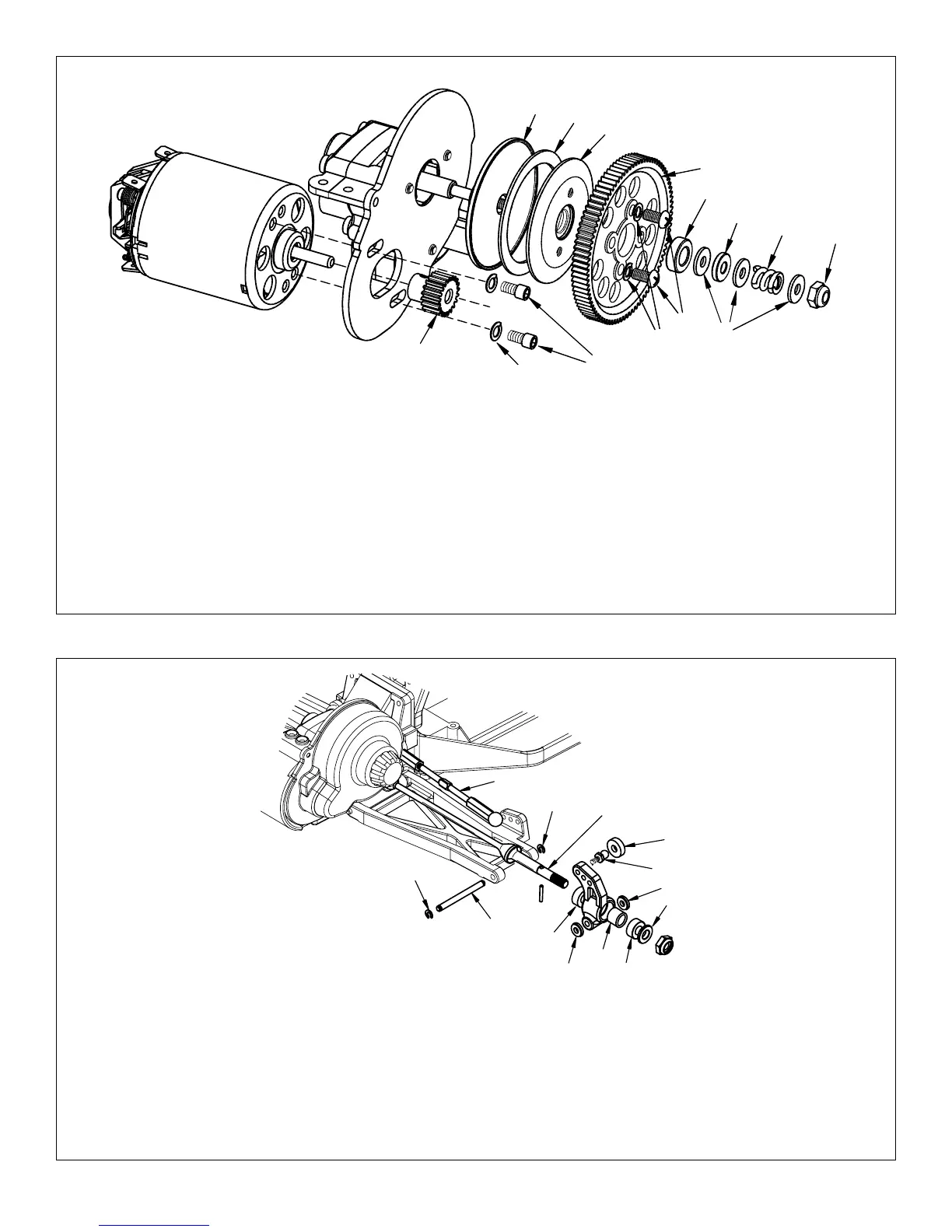 3. Place a 3mm plastic spacer (58) on each side of the rear hubs. Secure the rear hubs (26L or 27R) to the rear suspension