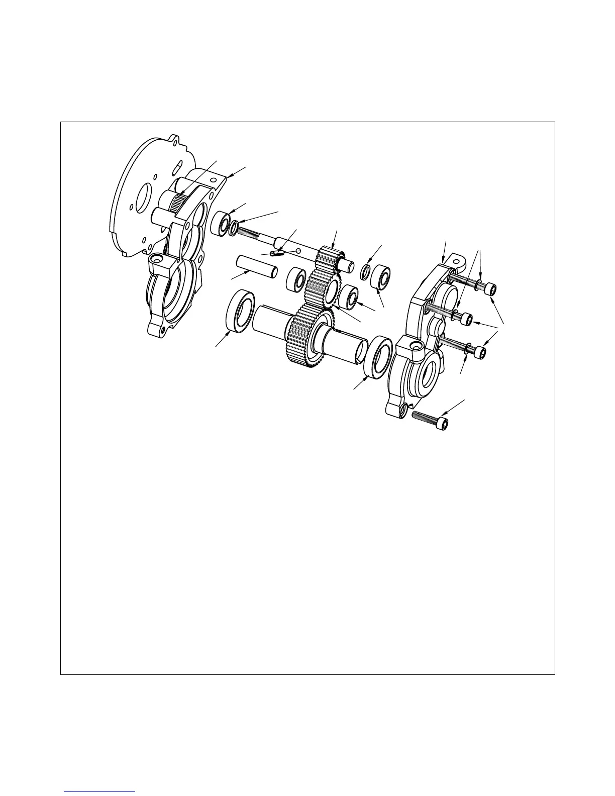 7. Install the idler gear shaft (89) into the idler gear bearings.