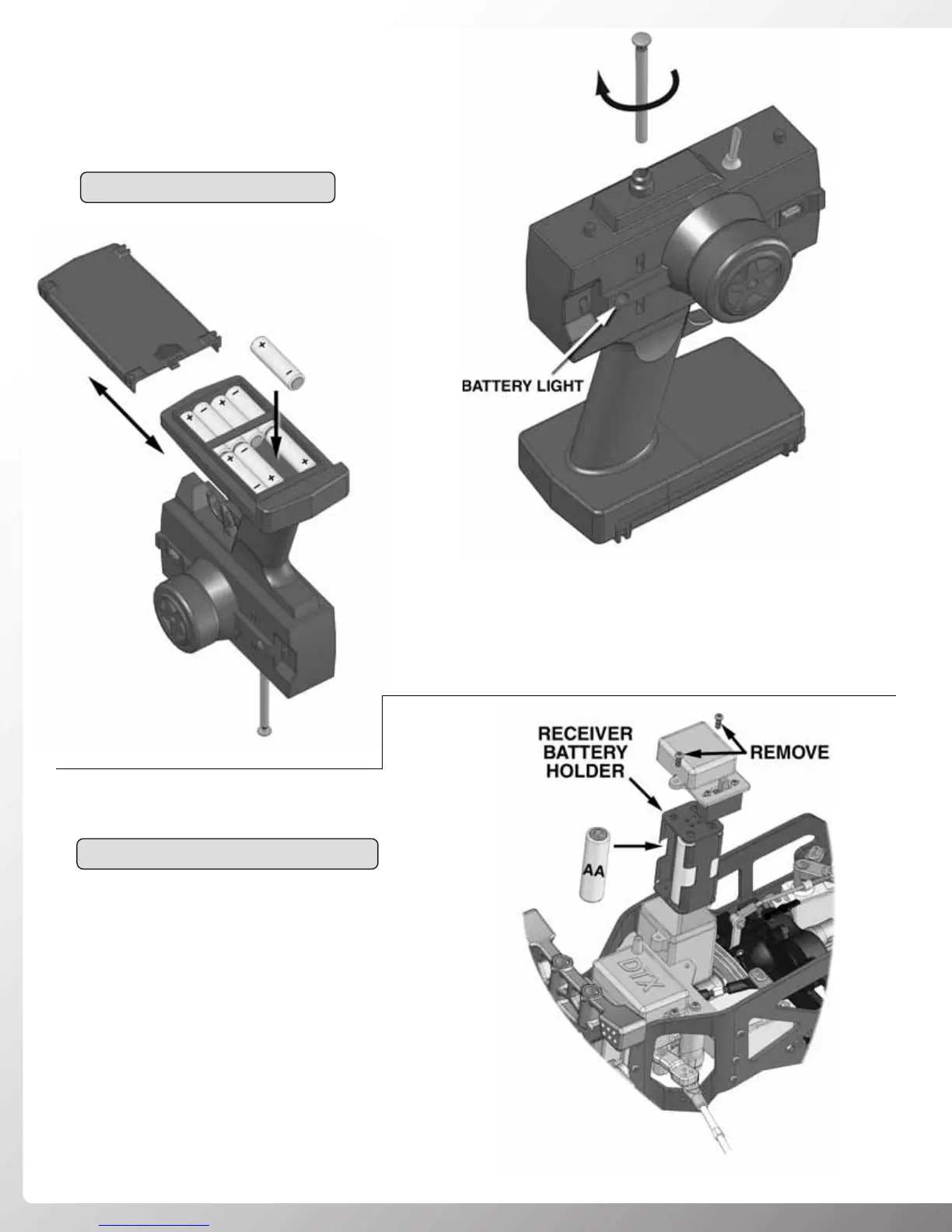 • Install eight “AA” batteries into transmitter, making sure the polarity is correct.