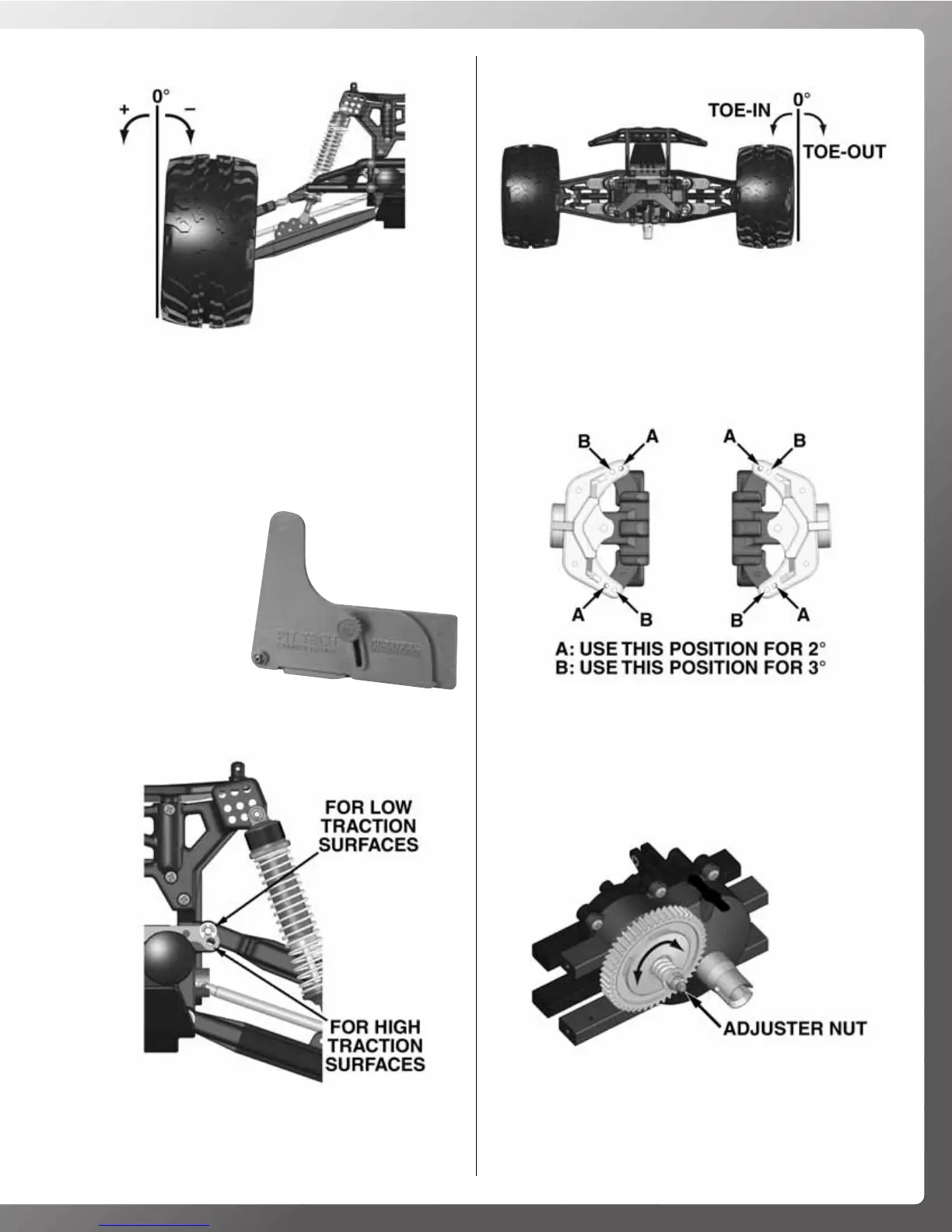 front typically is set-up with 0 to -2 degrees of toe-in.Toe-out