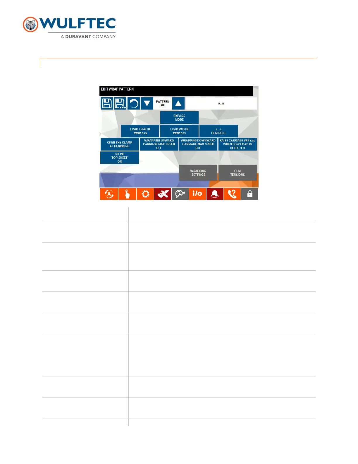 Used to select a pattern number and allows the modification of its description