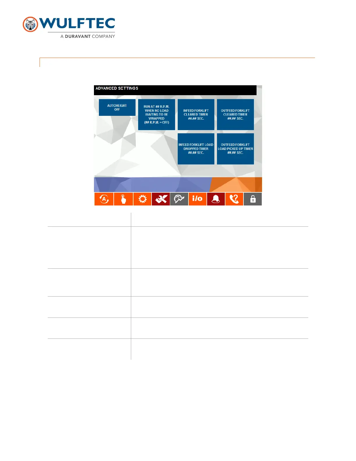 Used to change the delay on the forklift load picked up timer. This delay is