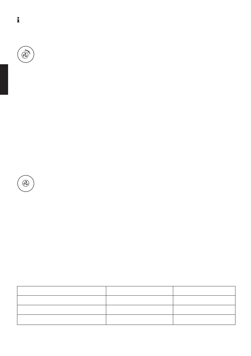 > Pressez la touche de présélection «Temps de marche par inertie du ventilateur»