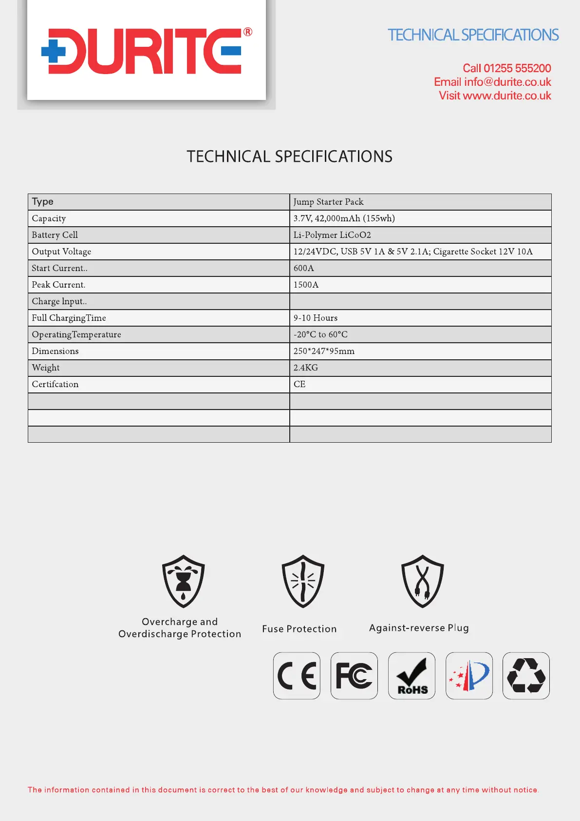Durite 0-649-40 - Technical Specifications and Compliance; Detailed Product Specifications; Safety and Protection Features