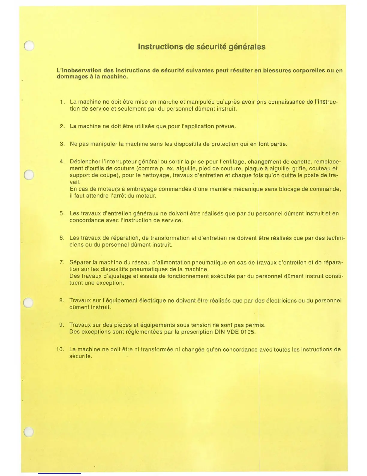 3. Ne pas manipuler la machine sans les dispositifs de protection qui en font partie.