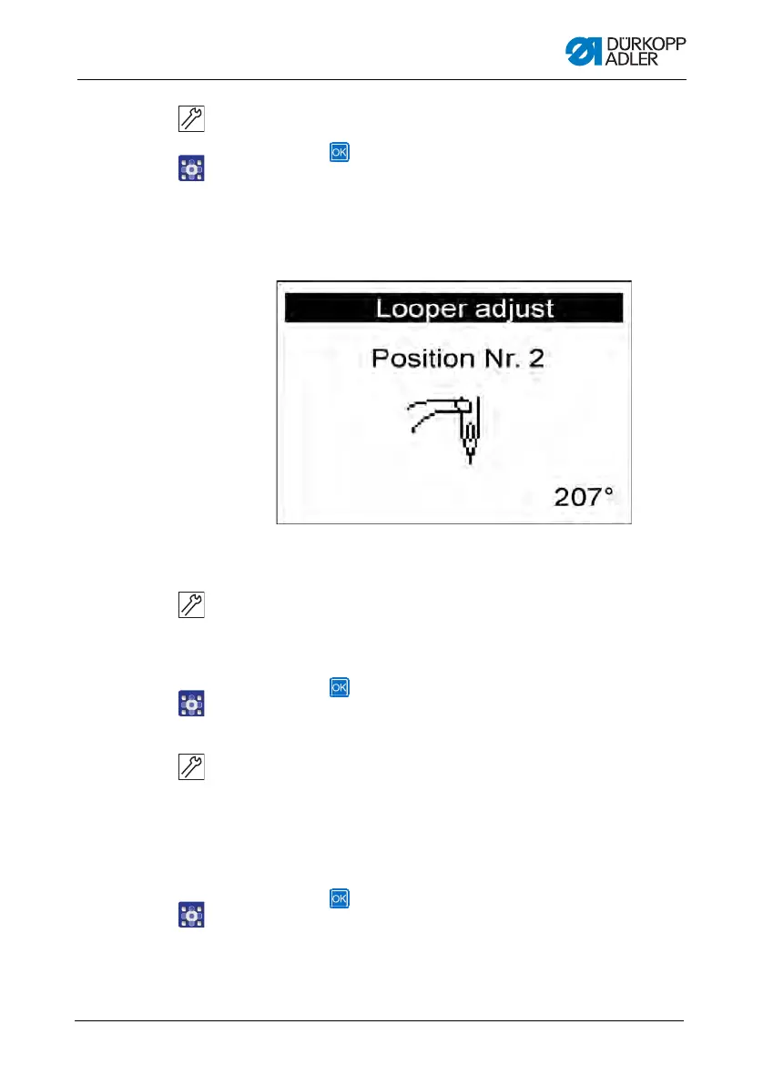 The sewing motor moves into the test position 2 (looping