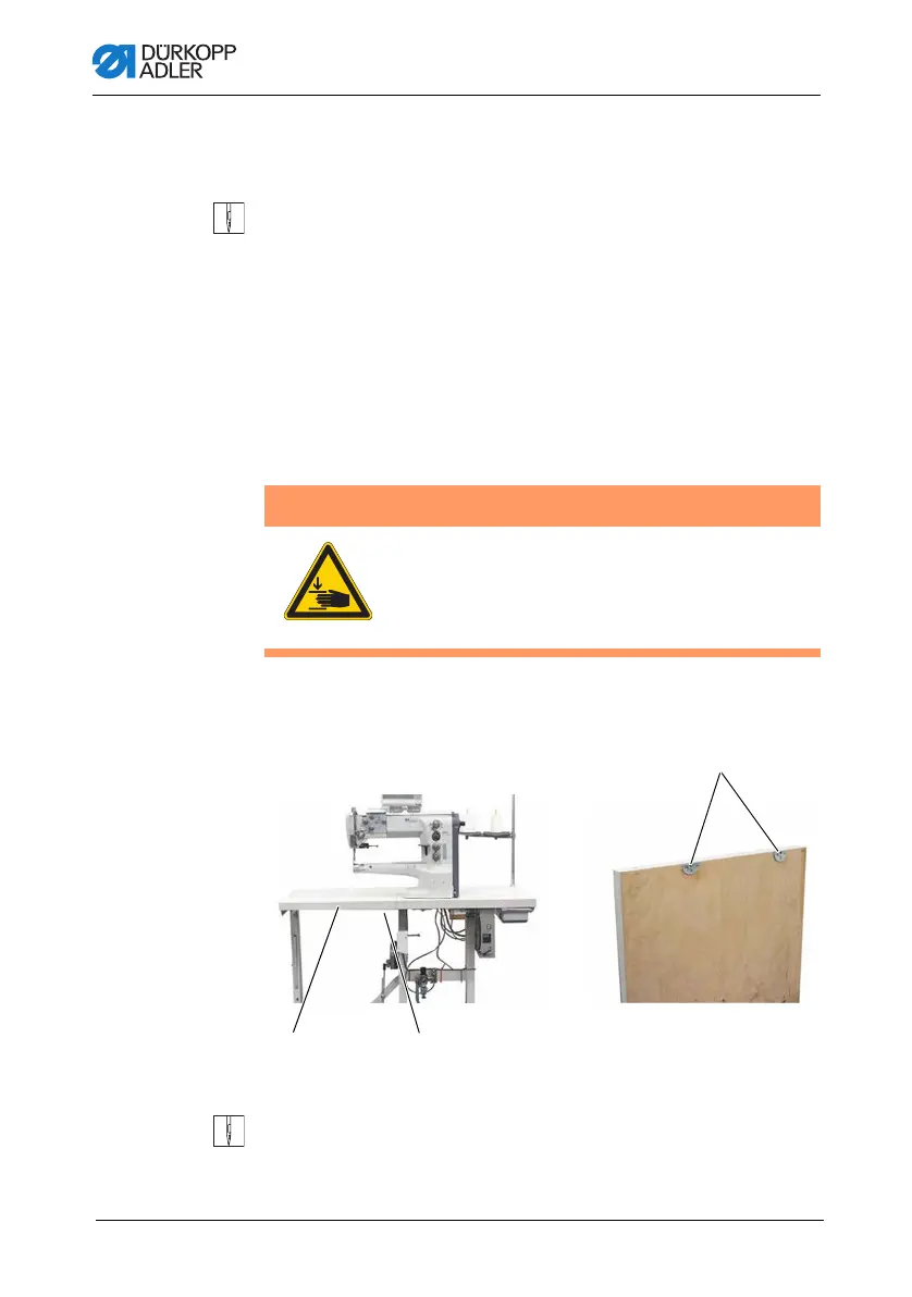 1. Loosen the tabletop latch (1) located under the tabletop (2).