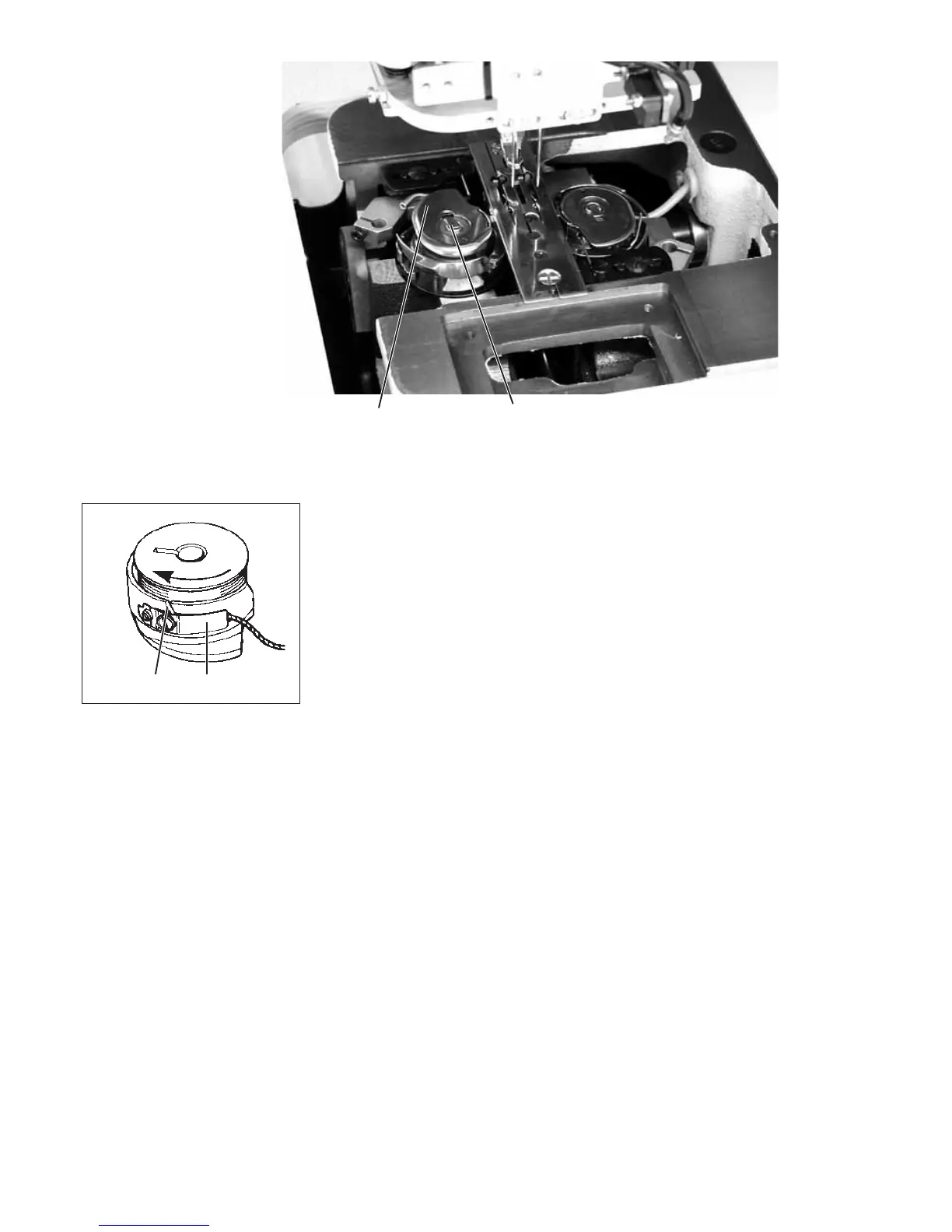 Insert a full bobbin in the upper part of the bobbin case 2.