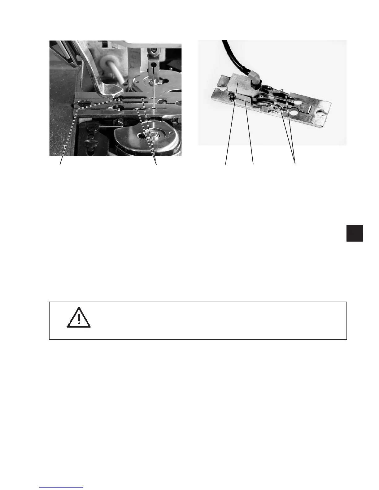 The hook thread clamp 1 is located under the throat plate. It opens
