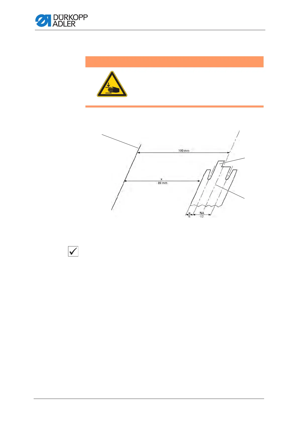 Deduct piping width a and half of the needle distance NA from the dimen-