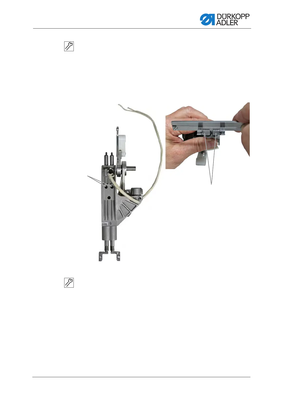 14. Screw in the needle holder (12) until the lateral screws are centered